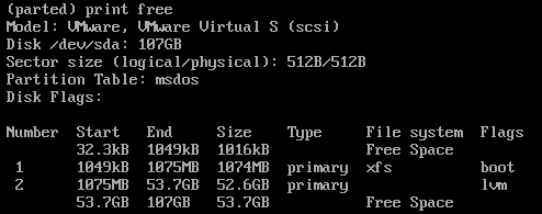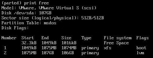 CentOS7에 기본적으로 설치되어 있는 parted라는 유틸리티를 사용하여, /dev/sda2 파티션의 공간을 확장해보겠습니다.