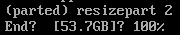 resizepart 명령어로 2번 파티션(/dev/sda2)의 공간을 확장시켜주겠습니다.