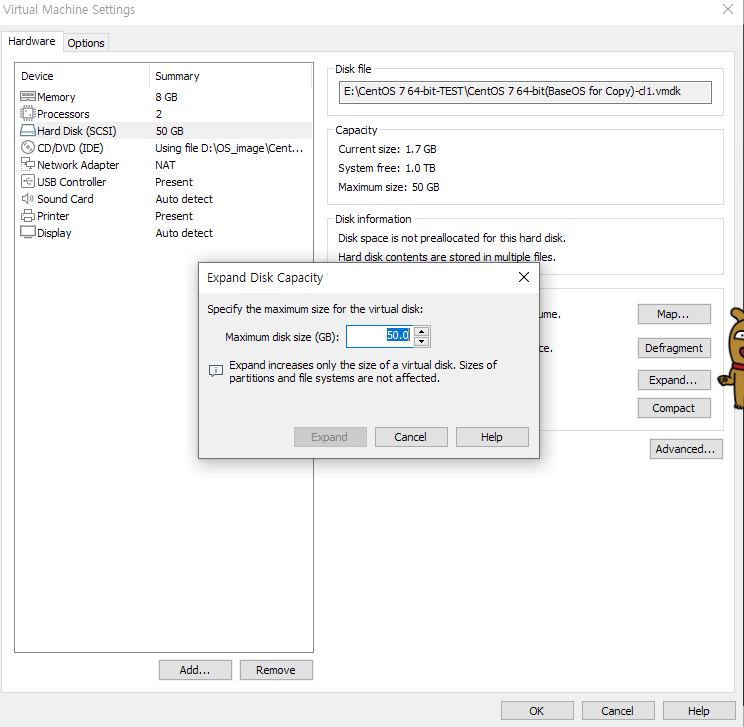 1. 기존에 가상머신에 할당된 디스크 파일의 사이즈를 증가시키는 방법