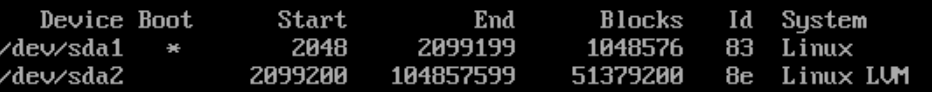먼저 /dev/sda에는 위의 fdisk -l 명령어로 확인하셨듯이 sda1 파티션과 sda2 파티션으로 총 2개의 파티션이 있습니다.