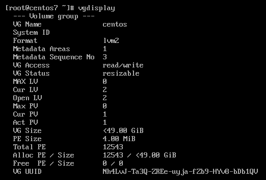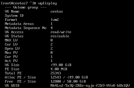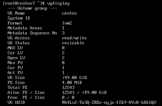 정상적으로 업데이트된 것을 pvdisplay와 vgdisplay로 확인합니다.